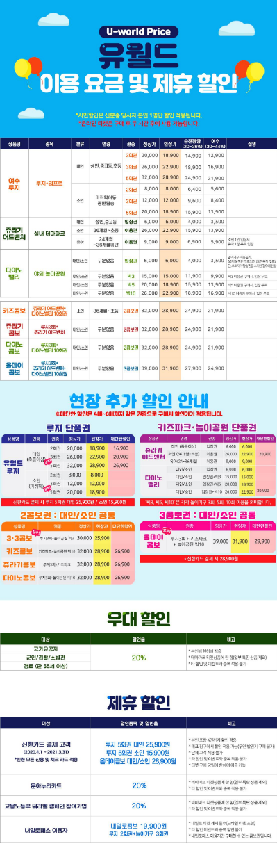 루지테마파크 이용요금 및 제휴 할인 정보입니다.