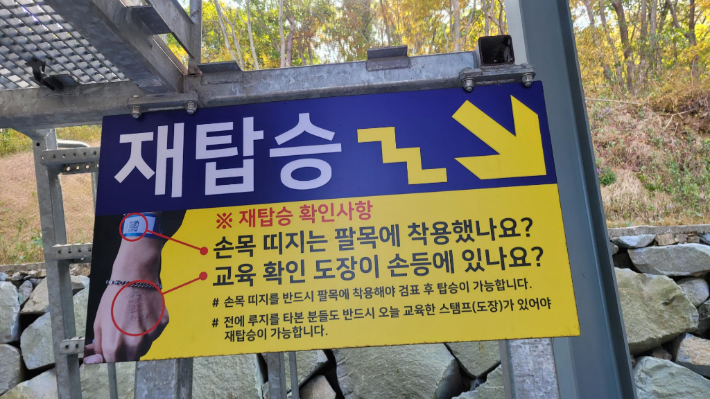 루지테마파크 입장권은 손목에 착용할 수 있는 것으로 줍니다.