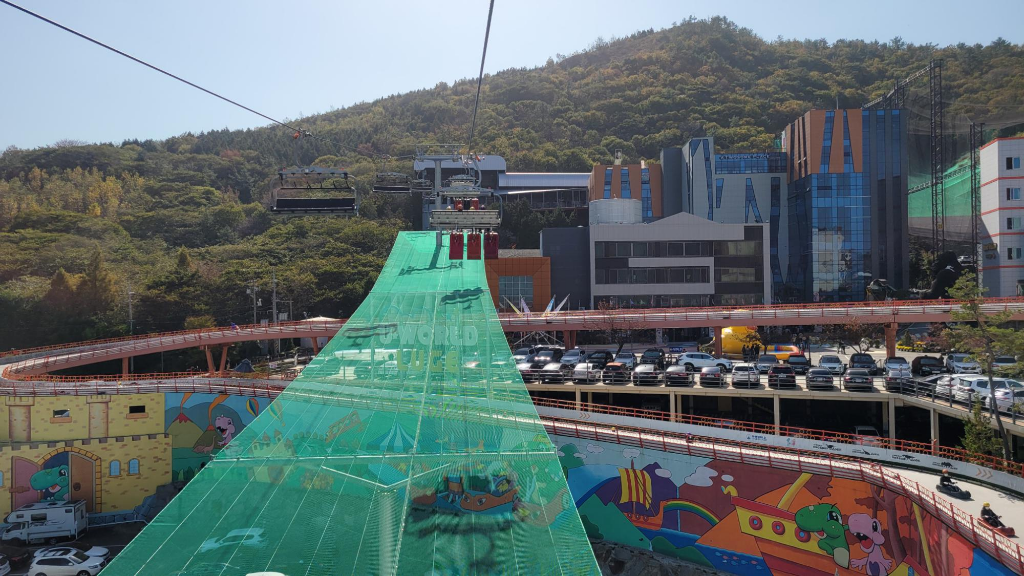 도착하게 되면 먼저 루지 트랙과 케이블카가 보이고 근처에는 공룡들도 많이 보이네요.