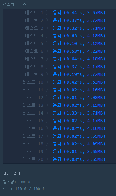 문제 내용, 조건, 예시는 프로그래머스 사이트 참조